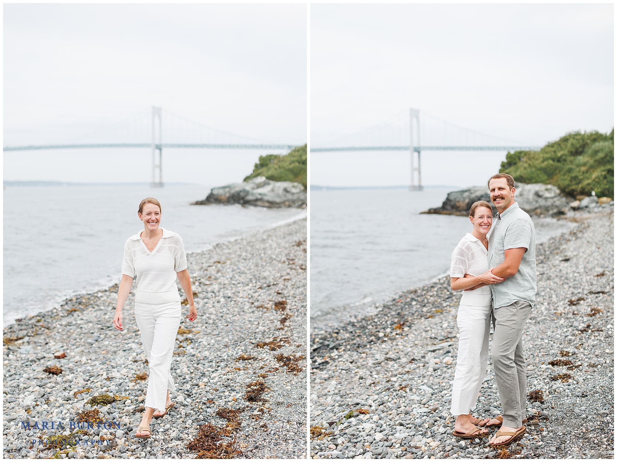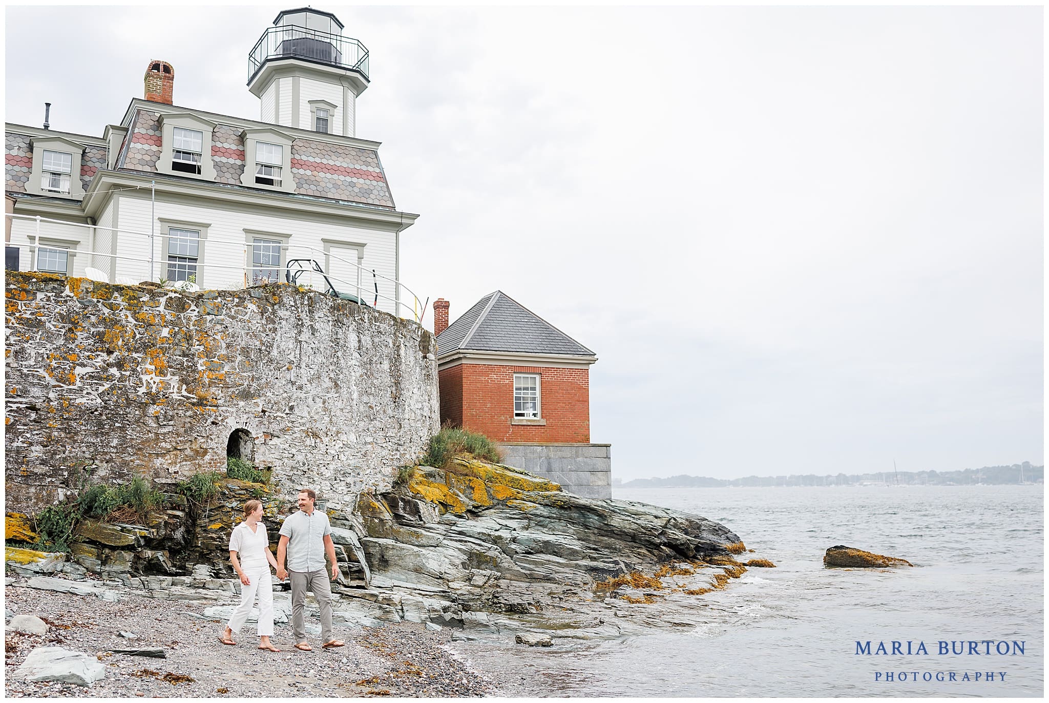 This session felt especially meaningful to me because my husband and I were married on Rose Island. Hanna and Adam chose it for their engagement photos for its history, character, and sense of escape. But also because they got engaged there a year earlier! The rustic lighthouse, rocky shoreline, rambling roses, and panoramic water views created a backdrop that felt windswept, romantic, and distinctly New England.