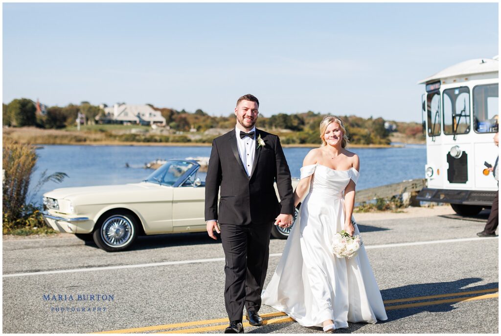After the ceremony, we headed out along Ocean Drive with the bridal party for portraits, soaking in the salty air and iconic Newport scenery. Mary Kate and Ciaran’s vintage car was the perfect finishing touch.